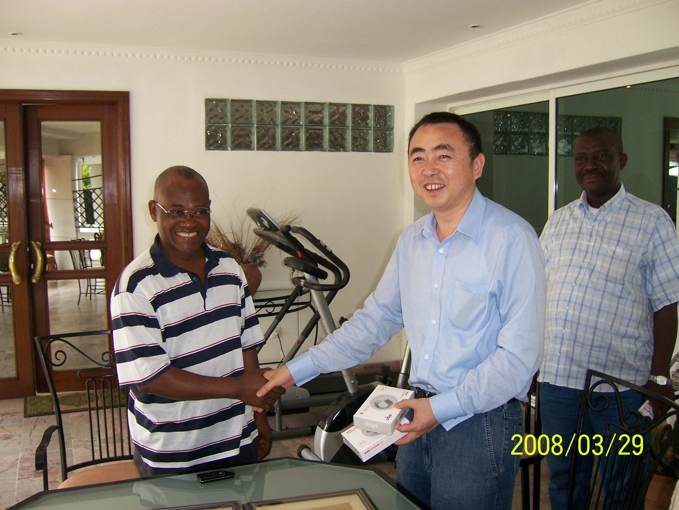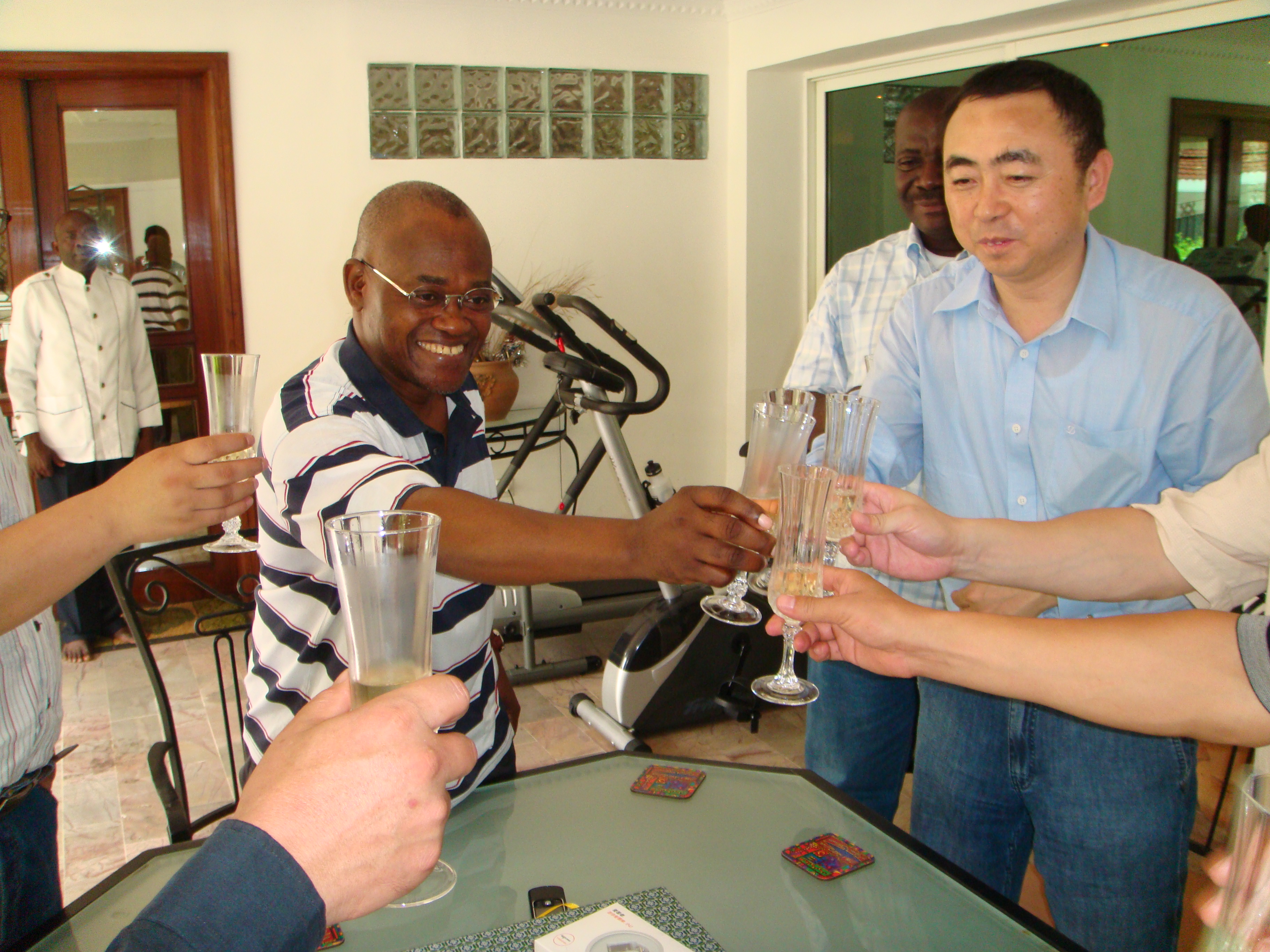 29日,陳董事長(zhǎng)會(huì)見了剛果(金)財(cái)政部部長(zhǎng),雙方就進(jìn)一步深化和擴(kuò)大工程領(lǐng)域的合作進(jìn)行了友好會(huì)談,并共同舉杯預(yù)祝恩安扎里項(xiàng)目合作成功。剛果(金)財(cái)政部部長(zhǎng)還愉快地接受了陳董事長(zhǎng)贈(zèng)送的禮物。