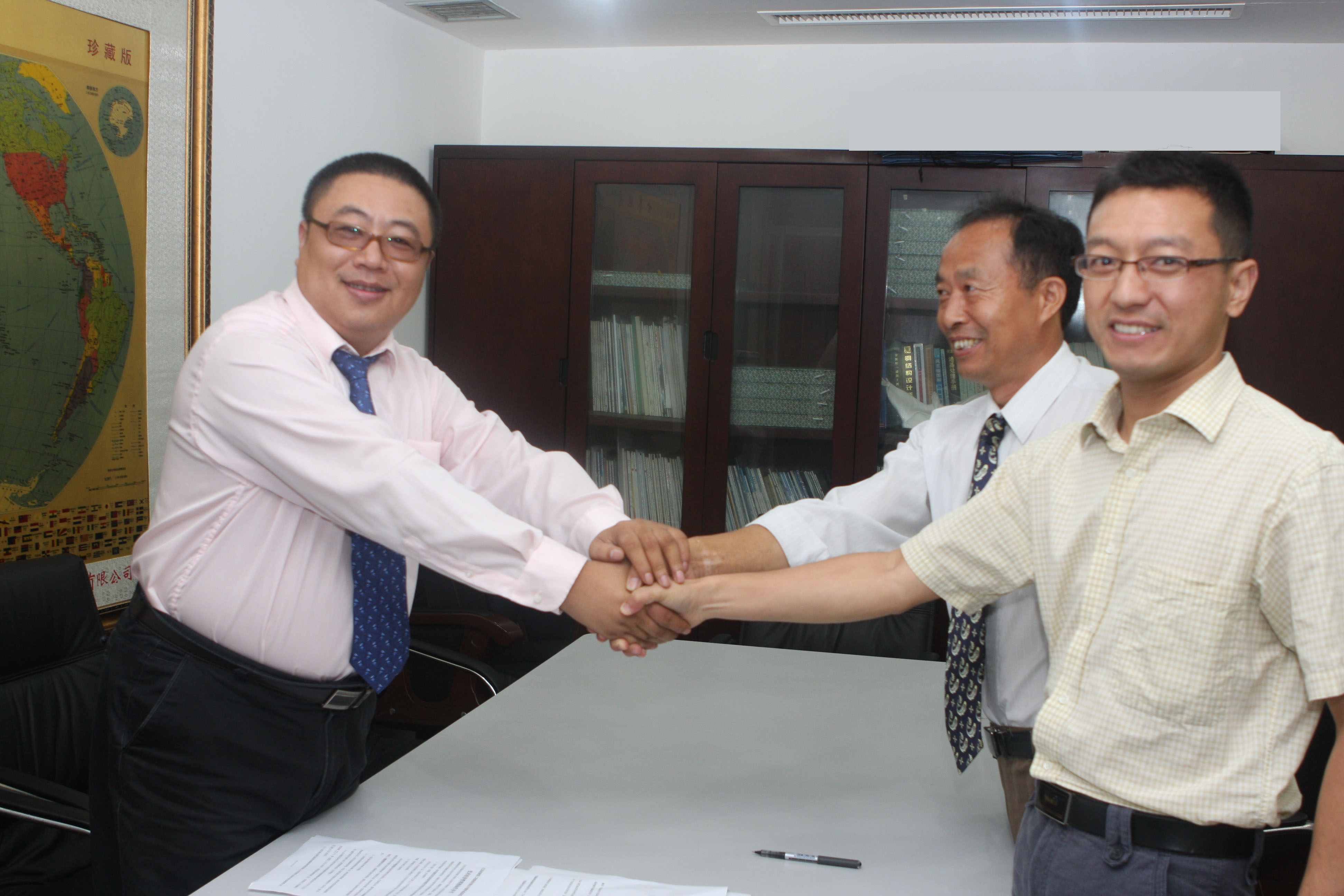 張三旗副總裁與密克項(xiàng)目組負(fù)責(zé)人簽約承包協(xié)議后握手