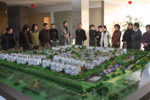 ■代表們參觀集團(tuán)開(kāi)發(fā)的樓盤(pán)沙盤(pán)模型圖
