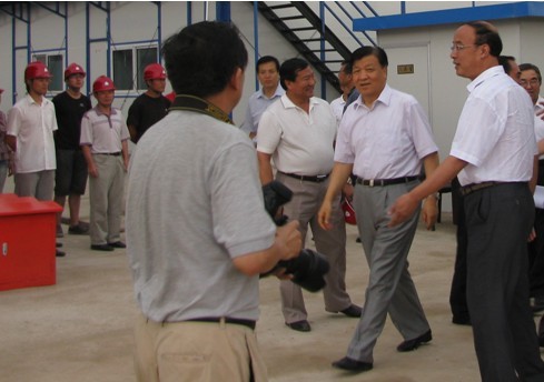 █ 2009年7月,中共中央政治局委員、中央書記處書記、中宣部部長劉云山在內(nèi)蒙古自治區(qū)、赤峰市和喀喇沁旗領(lǐng)導(dǎo)的陪同下,來到江蘇省建集團(tuán)赤峰紅星美凱龍工地視察。
