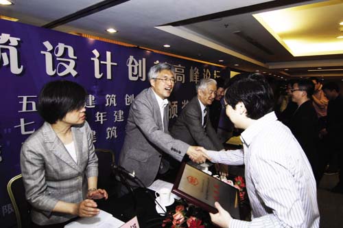 吳慧娟向多位獲獎(jiǎng)?wù)弑硎咀YR并寄語(yǔ)廣大建筑設(shè)計(jì)師,希望他們努力創(chuàng)新,促進(jìn)行業(yè)的發(fā)展。
