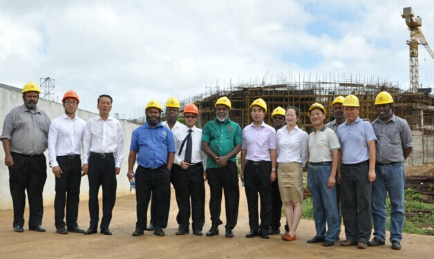 當?shù)貢r間8月8日上午,瓦努阿圖共和國總理納圖曼在中國駐瓦努阿圖大使謝波華陪同下,來到集團承建的中國援瓦國家會議中心工地視察。瓦總理府總司長、國家會議中心項目協(xié)調(diào)委員會主席、基礎設施部首席工程師等政府高官以及我駐瓦使館經(jīng)商處負責人楊旭紅陪同參觀。