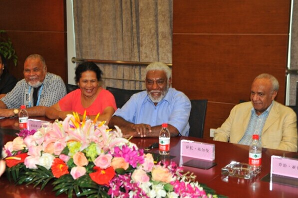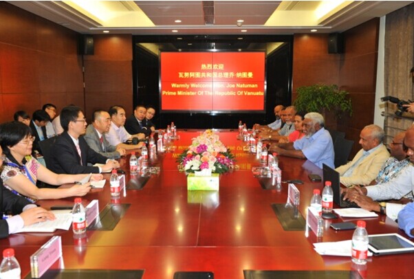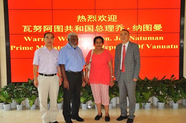 8月15日上午,正在中國(guó)南京出席第二屆青奧會(huì)開幕式的瓦努阿圖共和國(guó)總理喬·納圖曼在瓦外交部長(zhǎng)薩托·基爾曼、瓦駐中國(guó)大使莫利薩夫婦和中國(guó)駐瓦大使謝波華夫婦等陪同下,率領(lǐng)政府代表團(tuán)一行10余人來集團(tuán)公司考察訪問。陳正華董事長(zhǎng)熱情接待了代表團(tuán)一行。